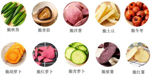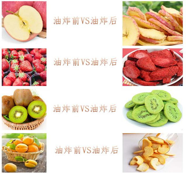 with low water content be obtained with low oil cinter crisp but not greasy.The original shape,color and taste of fruits