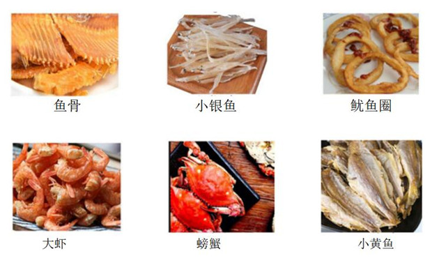 4. Aquatic products: such as fish fillet, fish bone, shrimp, octopus, Wuchang fish, crawfish, crabs, small silver fish, etc